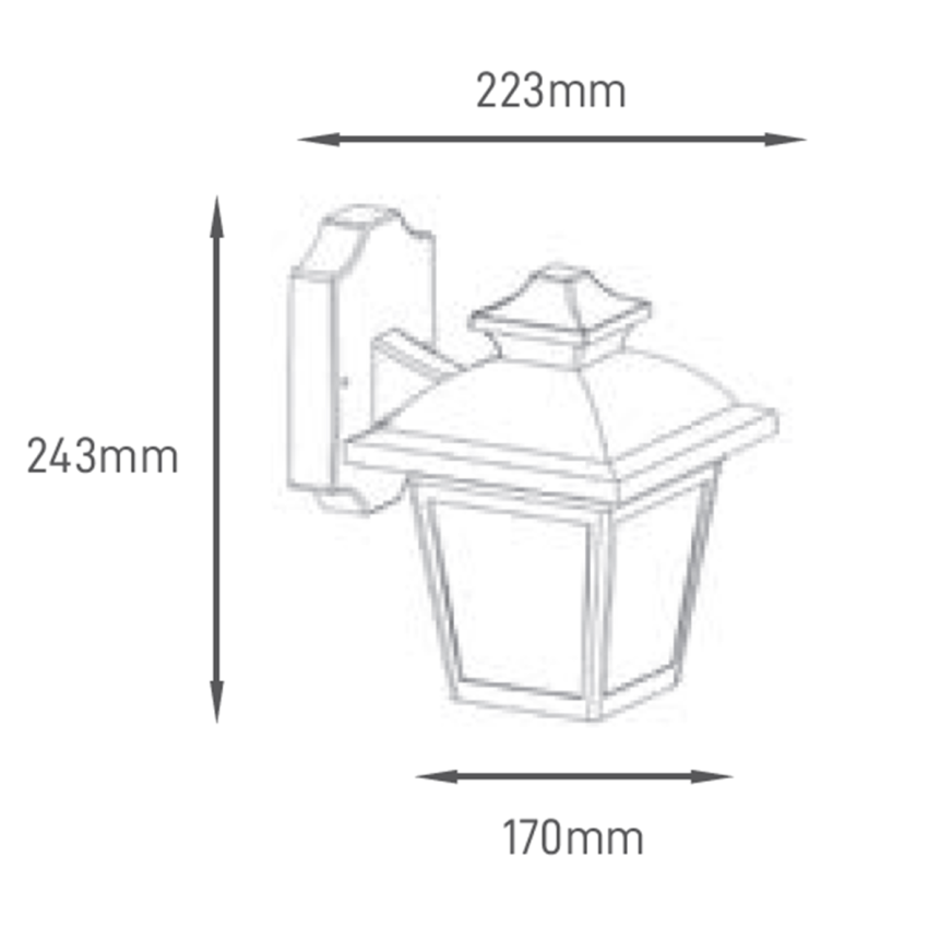 Aplique de jardim com design clássico para lâmpada E27. Materiais em plástico ABS PC com