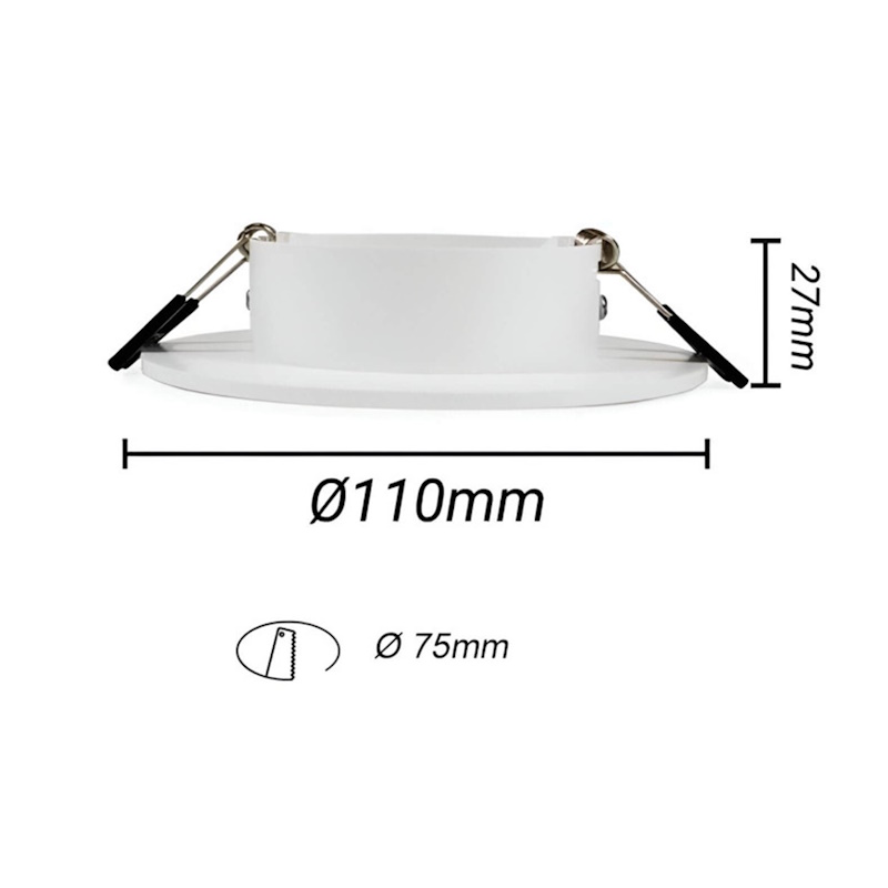 O aro circular BRANCO orientável para GU10 em policarbonato é uma solução elegante e funcional para a iluminação de interiores, ao mesmo tempo que permite a sua instalação em áreas de alta umidade e zonas costeiras salinas, pois não se deteriora como os metais.