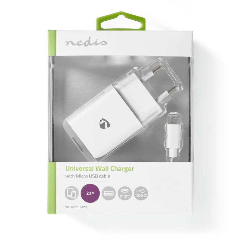 Carregue smartphones, tablets, sistemas de navegação, câmeras digitais e muitos outros dispositivos USB com este carregador de parede Nedis® USB com cabo Micro USB incluído.