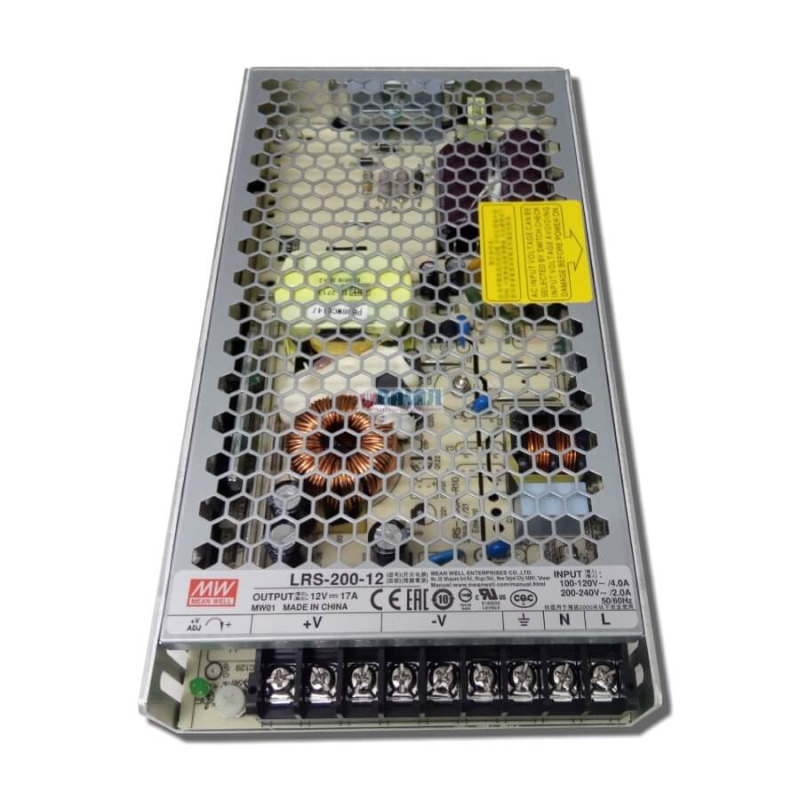 Fonte alimentação MEANWELL de maxima qualidade para as aplicações mais exigentes para uso em instalações interiores que proporciona uma saida de DC12V/200W/17A.