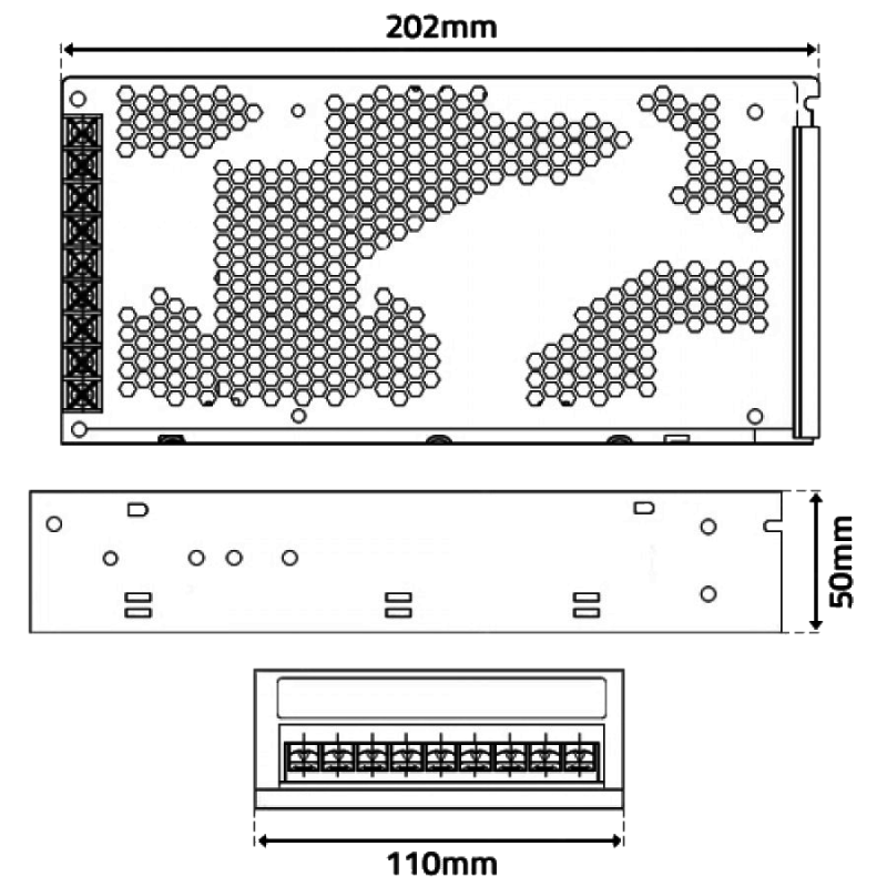 Dimensões (mm): 202 x 110 x 50
