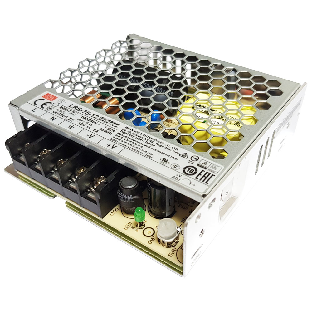 Fonte alimentação MEANWELL de maxima qualidade para as aplicações mais exigentes para uso em instalações interiores que proporciona uma saida de DC12V/75W/6A.