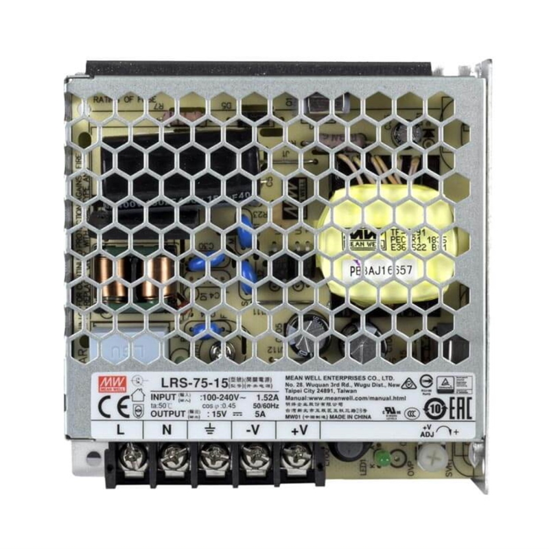 Fonte de alimentação encapsulada de saida unica de 75W da serie RS Pro LRS-75 é um produto fechado de perfil baixo muito eficiente. Graças à malha metalica e à convenção de ar que garante uma optima dissipação de calor, a serie LRS-75 está projetada para utilizar-se em aplicações exigentes.