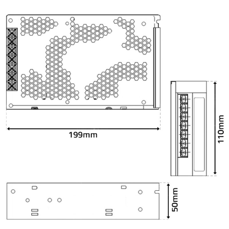 Dimensões: 199mm x 110mm x 50mm