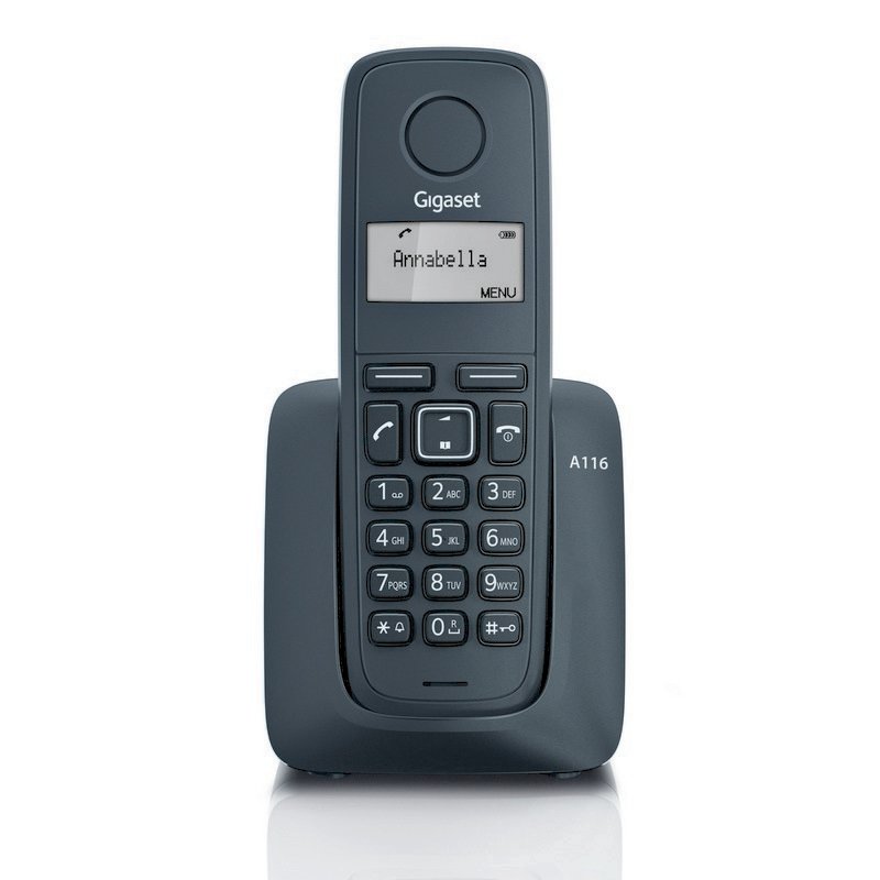 Telefone sem fios DECT com desenho moderno e funcional, com teclas fáceis de usar, oferecendo múltiplas funções para usar no dia a dia.
