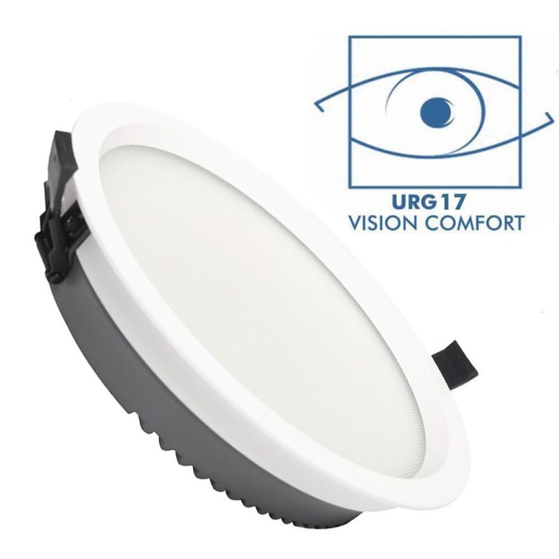 DOWNLIGHT CCT: COR SELECIONÁVEL: Nosso downlight circular embutido de LED Philips CertaDrive de 40W tem um seletor de temperatura de cor, branco frio, branco neutro e branco quente. UGR17. Ângulo de 120º.