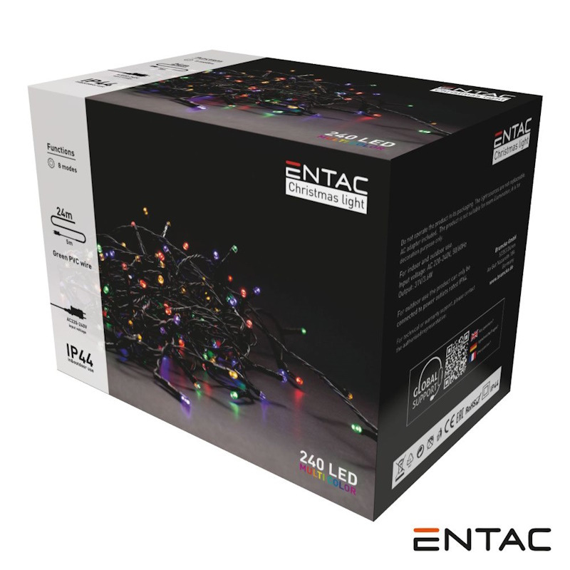 Grinalda com 240 lâmpadas LED com tom de luz multicolor frio e uma potência de 3.6 W.