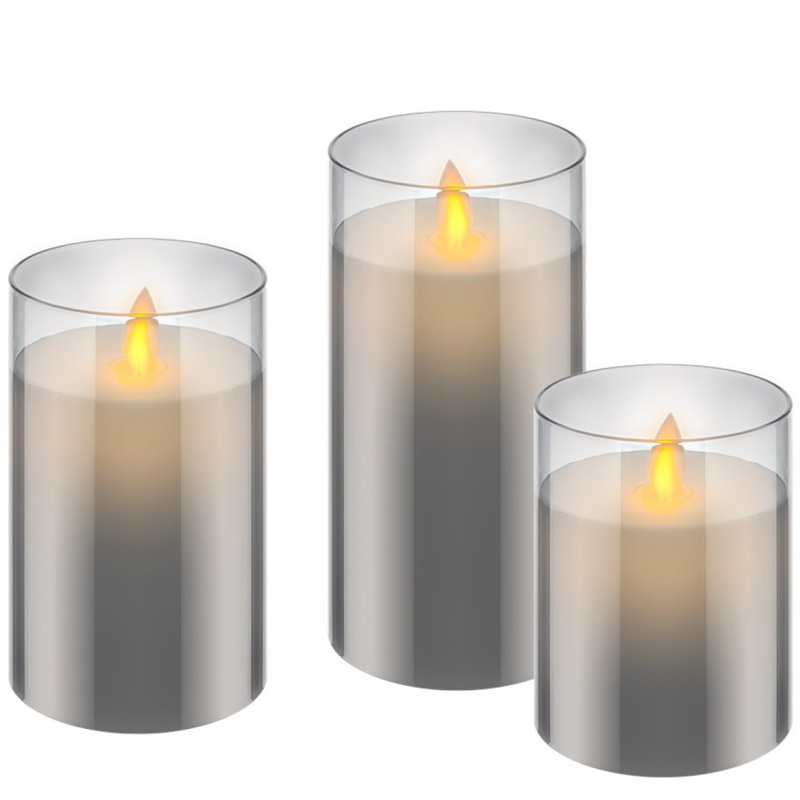 LED Kit 3 Velas Cera Natural c/Copo Vidro