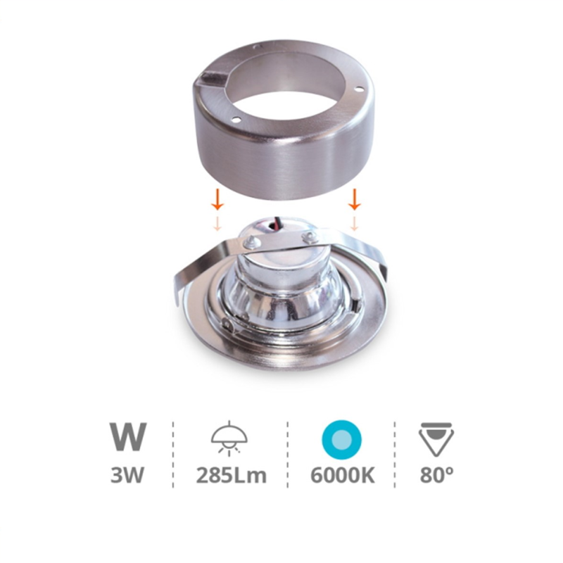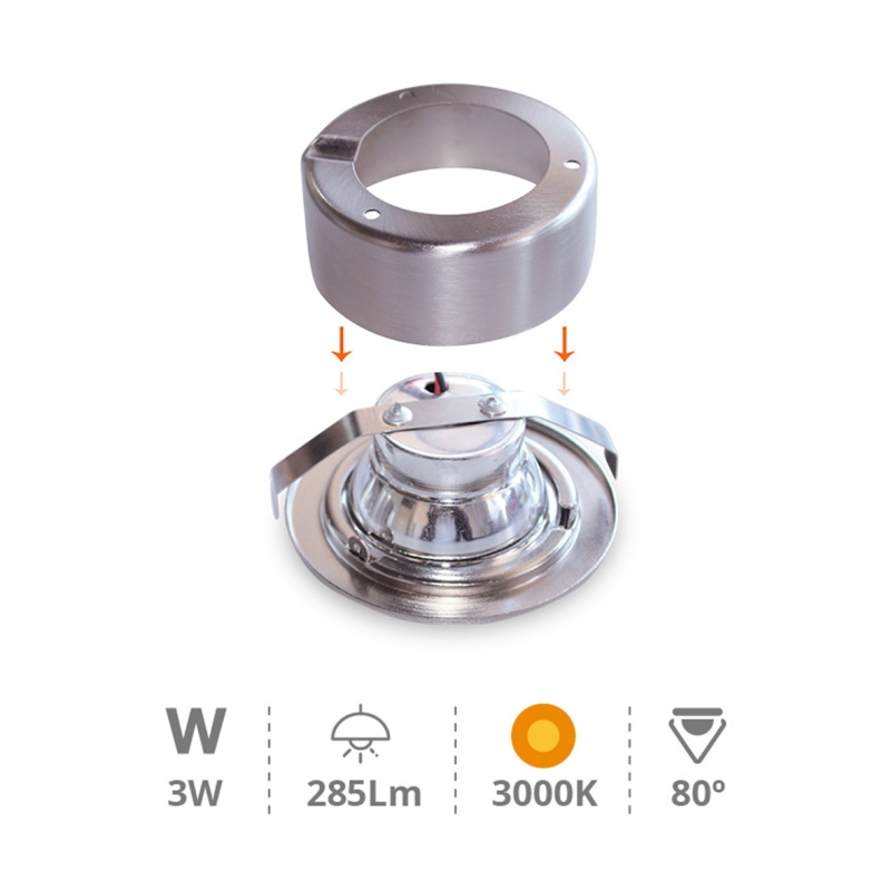 LED Spotlight 3W IP20 Ø70mm Niquel.