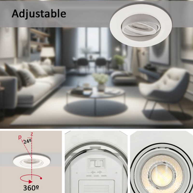 O nosso projetor LED de encastrar não é apenas mais um no mercado. O seu design direcional permite-lhe direcionar a luz exatamente para onde precisa, gira 360º e tem uma rotação de 24º para a ajustar de acordo com as necessidades de cada espaço. Acabaram-se as sombras incómodas e as zonas mal iluminadas - crie o ambiente perfeito ajustando simplesmente a direção da luz!