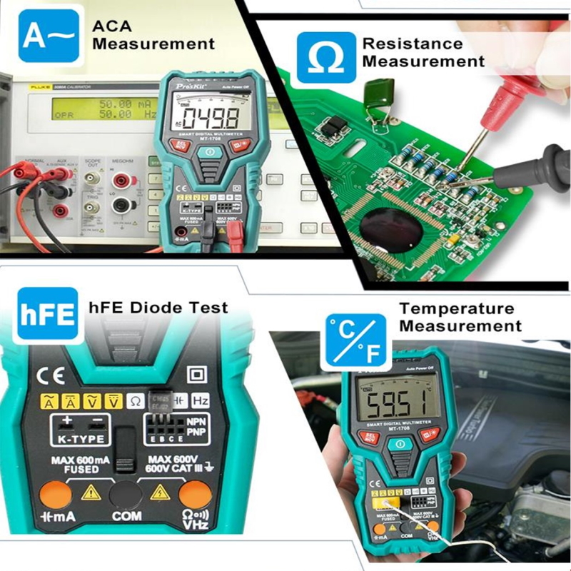 - Corrente AC/DC: 600mA, True-RMS, teste Re-sistência, Frequência, Capacidade e Continuidade
