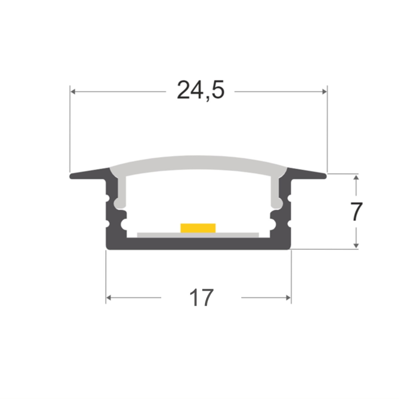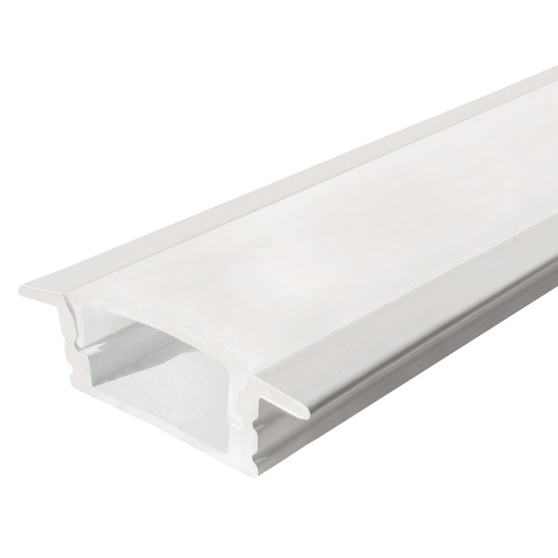 Perfil de Alumínio Branco em U baixo de encastrar com Abas e Difusor Opalino para fita LED com largura até 12mm.