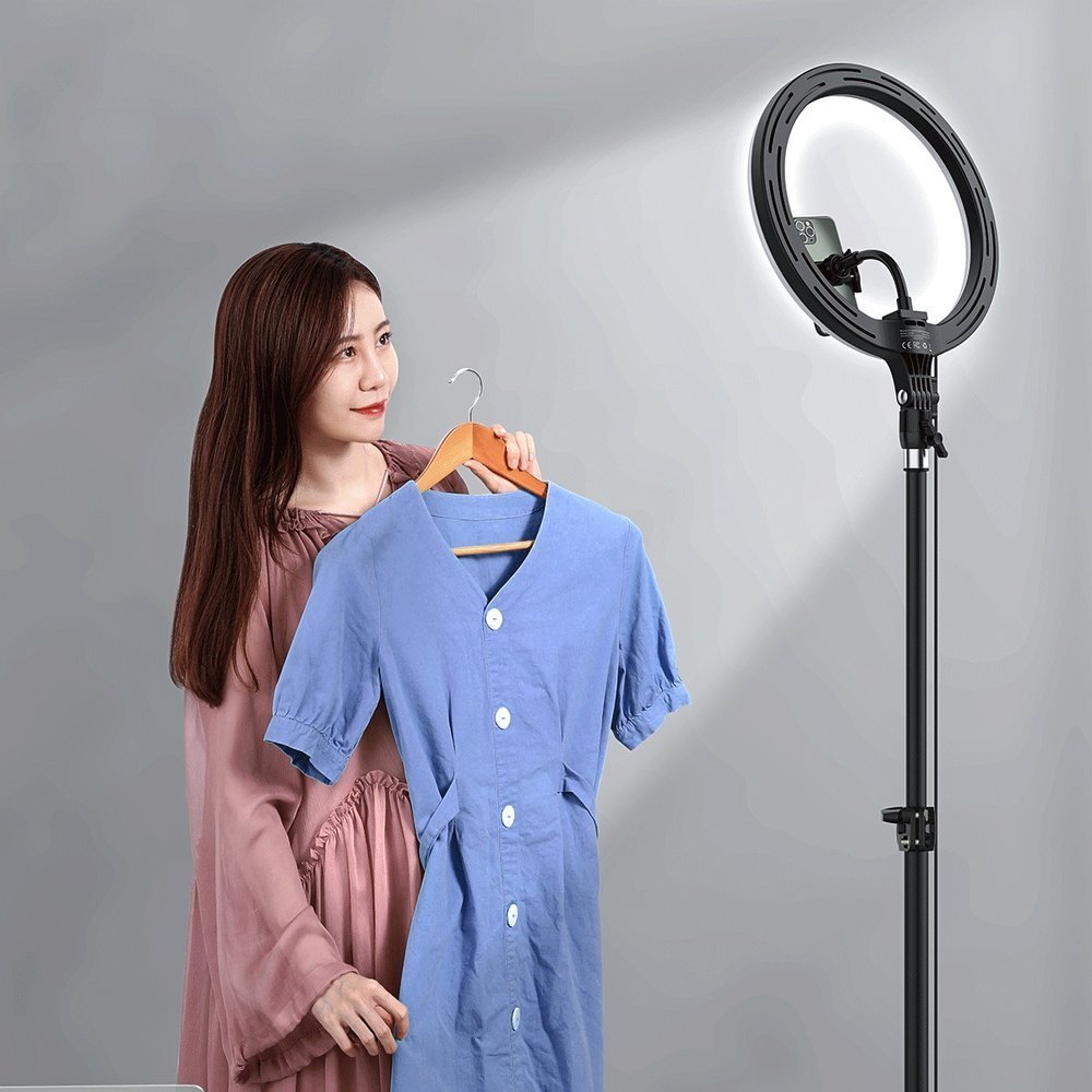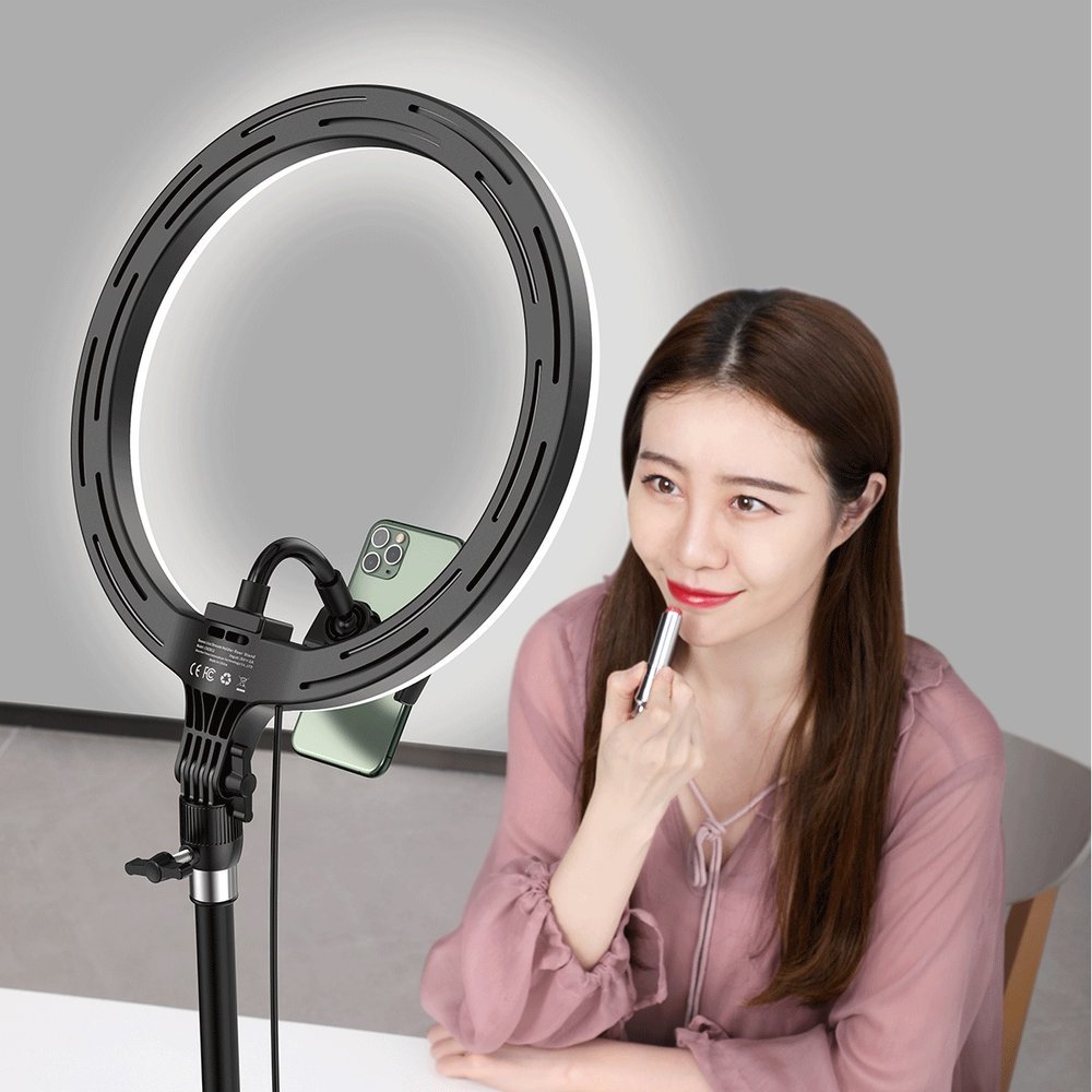 Este Ring Light (candeeiro de estúdio) profissional com 10 polegadas de diâmetro é uma lâmpada ideal para quem grava vídeos ou faz stream.